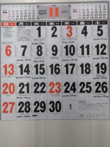 火曜日 10:00~17:00(11/15、22、29は休み)
